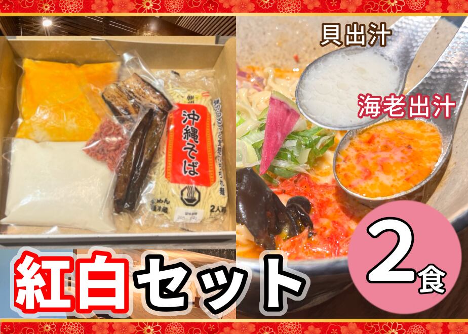 【貝出汁&濃厚海老出汁そば】開運!紅白/食べ比べ2食セット